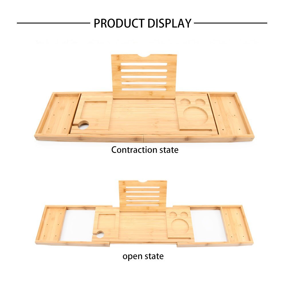 After a long, stressful day, few things compare to a long soak in the tub to relieve stress and anxiety. With our bamboo bathtub tray you can soak in a luxurious bubble bath, with a good book, glass of wine or even a streaming movie at your fingertips. Youll never have to rush from the tub again to catch a phone call or reach over the of the tub for soap, face towel or a loofah.