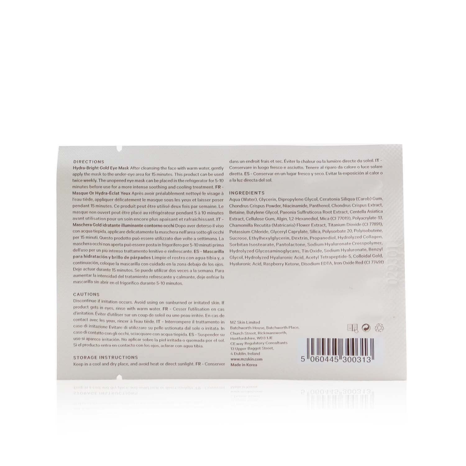 Home > MZ SKIN - Hydra-Bright Gold Eye Mask 180737 / 300078 5x 3g/0.1oz
