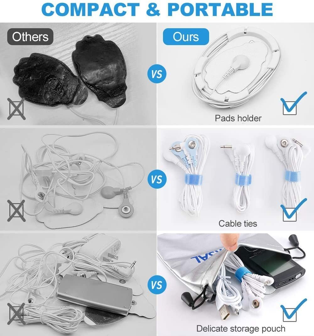 1.PROFESSIONAL PAIN RELIEF MACHINE: The electronic tens device brings non-invasive pain-relief method for home uses. 24 pre-programmed massage modes provide precise control for pain relaxation and soothing muscle stiffness, just as a real human massage does.