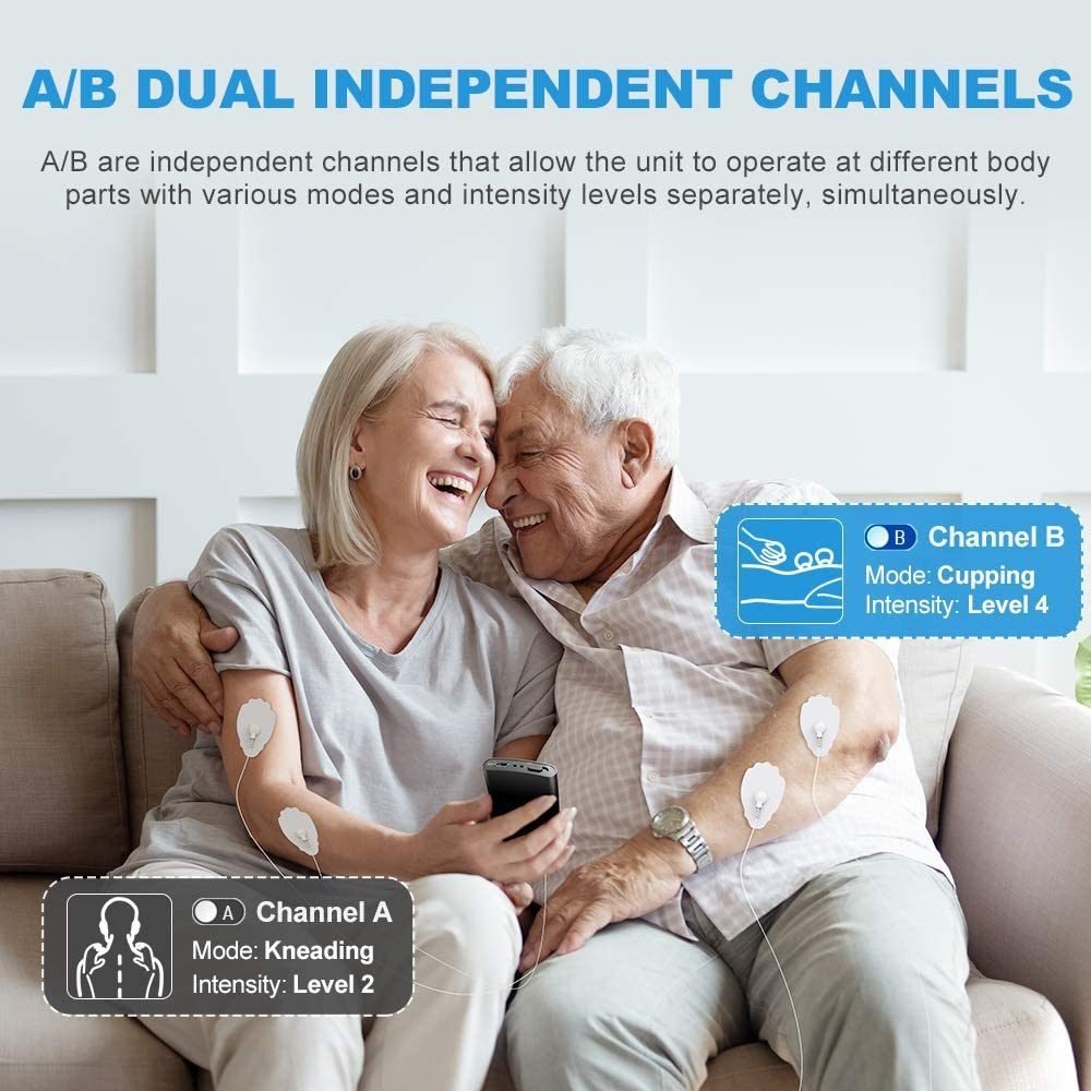 2.REAL AB DUAL CHANNEL: Comparing with other dual channel TENS massagers which can’t change modes separately, this rechargeable electric muscle massager can set separate modes and intensities for channel A and channel B