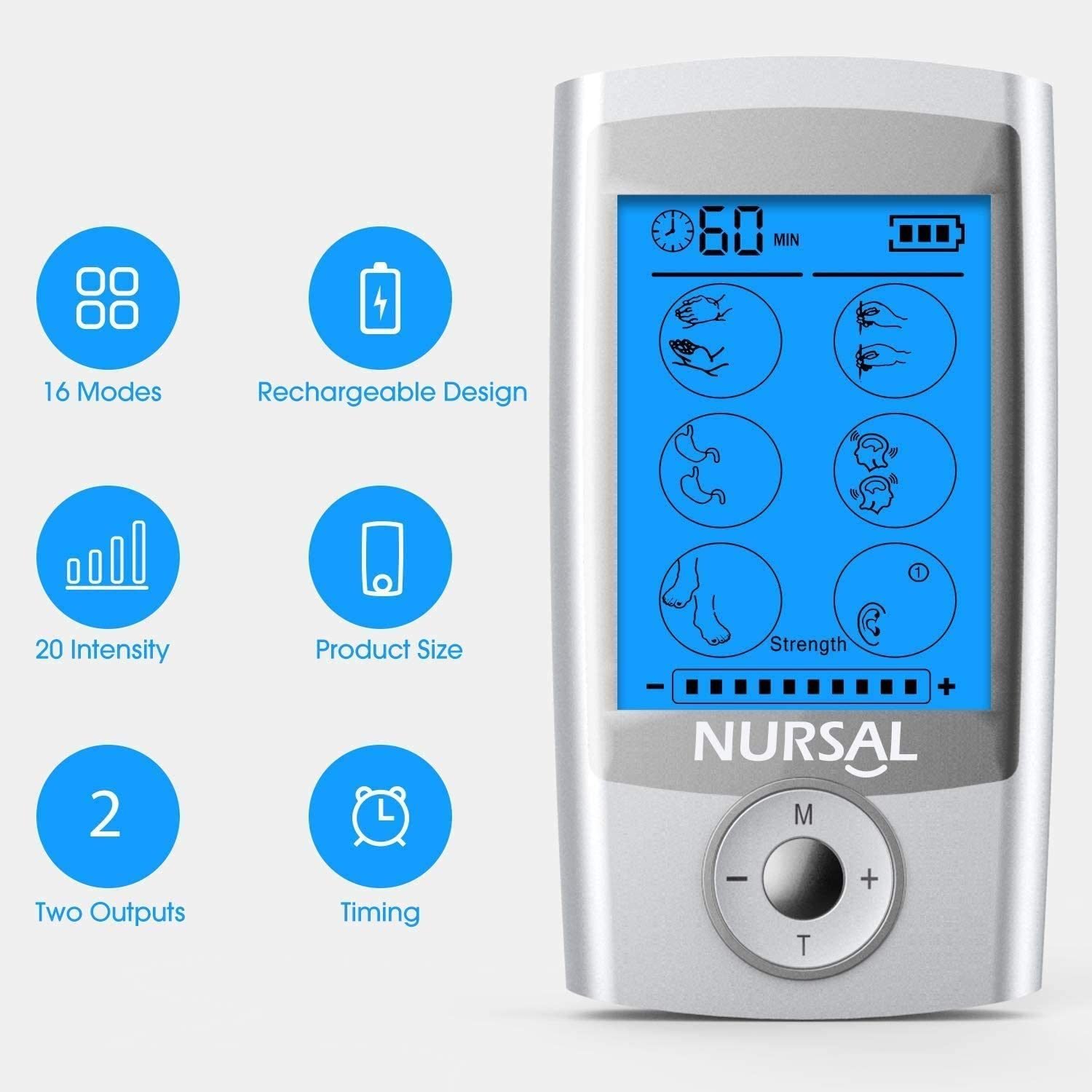 Home > NURSAL EMS TENS Unit Muscle Stimulator, 24 Modes Rechargeable Electric Pulse Muscle Massager for Pain Relief (16 Thicker Pads)