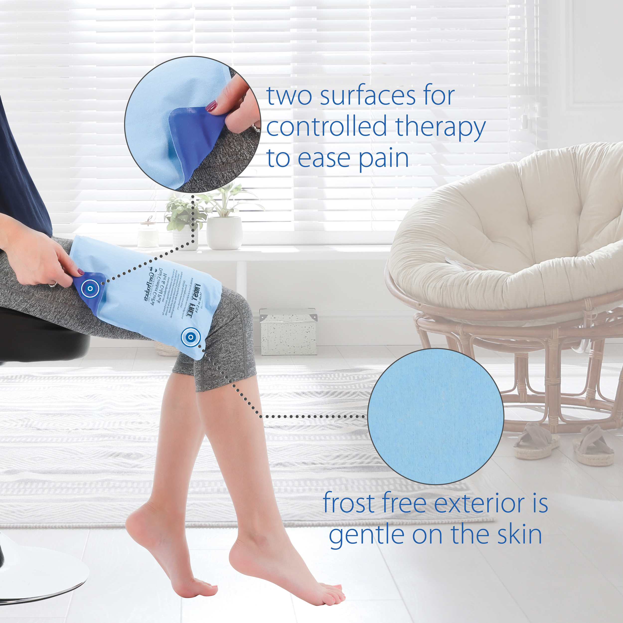 • Freeze for cold therapy or heat in the microwave for quick relief