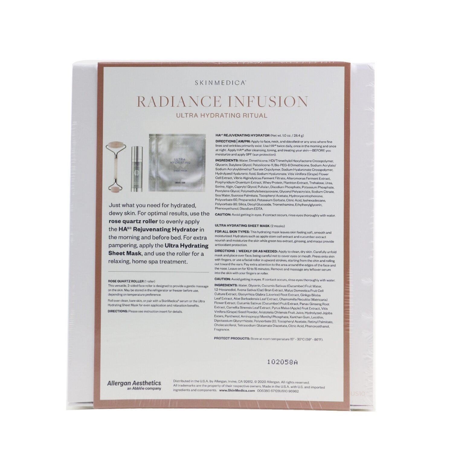 Radiance Infusion Ultra Hydrating Ritual Set: HA Rejuvenating Hydrator 28.4g + Ultra Hydrating Sheet Mask 2pcs + Rose Quartz Roller